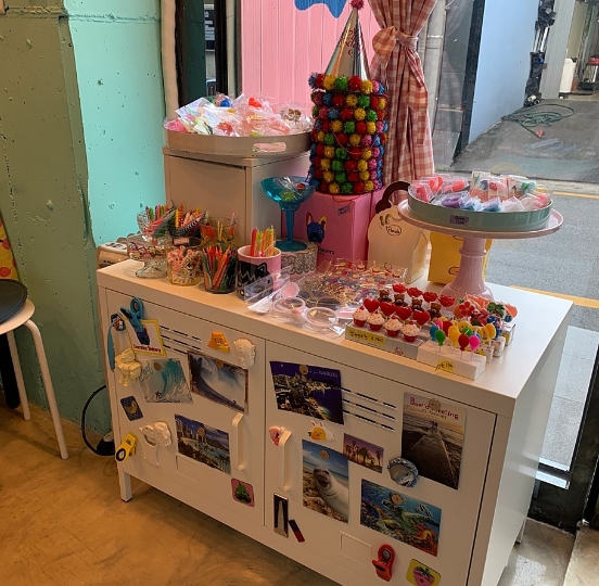 광안리해수욕장이 바로 앞에 있어서 날 좋을 때 광안리 카페에서 디저트나 음료 테이크아웃 해서 피크닉 가는 사람들을 종종 봤는데 도로시베이커리에 들러서 달달구리들과 피크닉 소품사기에 딱이에요. 저번에 왔을 땐 몇 가지만 있었는데 디자인초부터 케이크 토퍼, 꼬깔모 등 종류가 엄청 다양해졌어요. 진짜 그만큼 피크닉 허시는 분들이 많은가봅니다.