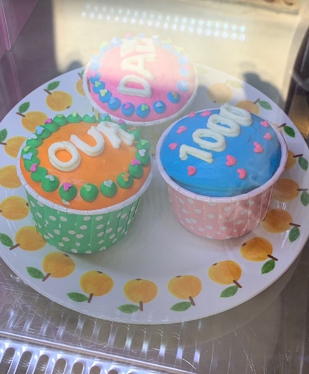 고민하다보니 따끈따끈한 초코컵케이크들이 등장했어요. 누군가 1000일 기념으로 3개 세트로 주문 했나봐요.