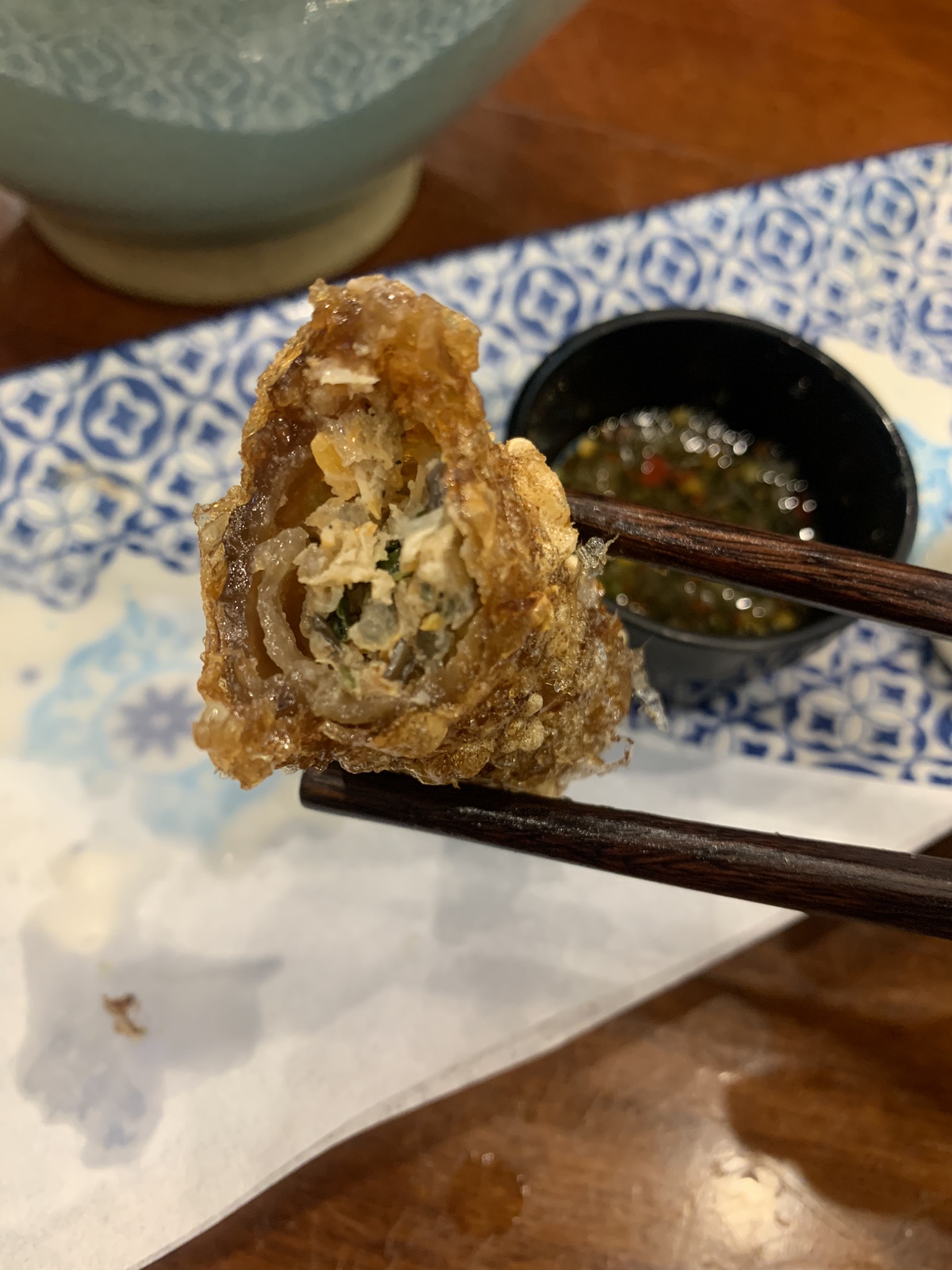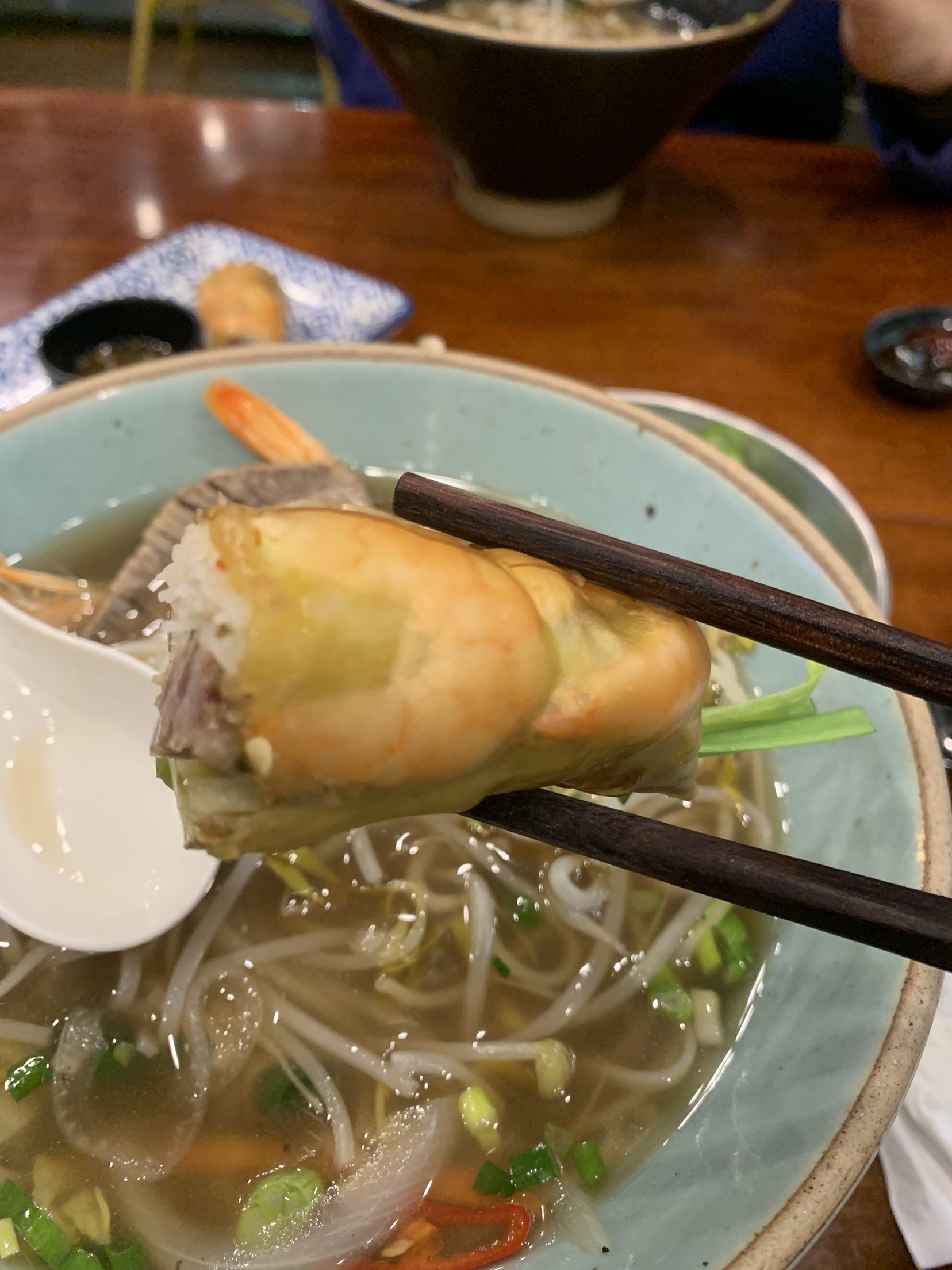 세트로 주문한 고이꾸온와 짜조. 고이꾸온은 양상추와 소고기 양지, 쌀국수면과 새우를 넣고 라이스페이퍼로 싼 스프링이고 짜조는 다진 돼지고기와 다진 야채로 속을 채워 바삭하게 튀긴 스프링롤. 둘 다 피쉬소스에 콕 찍어 먹는 메뉴에요.고이꾸온은 담백한 맛, 짜조는 튀긴거라 약간 묵직해요. 둘 다 크게 맛있다는 느낌은 못 받았지만 쌀국수만으로 부족하다 싶을 때 곁들여 먹기에 좋네요.