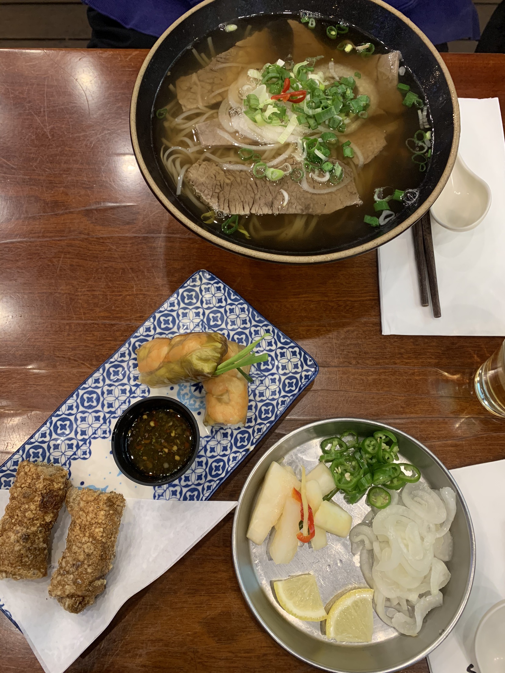 남편은 소고기 쌀국수인 퍼보, 저는 해산물 쌀국수인 퍼도를 주문했고 볶음밥을 하나 더 주문할까 고민하다가 세트 메뉴로 짜조와 고이꾸온을 하나씩 추가했어요. 일단 비주얼은 합격! 화려하지 않지만 뭔지 모르게 플레이팅이 예쁘더라구요.