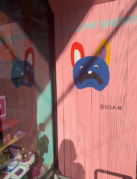 부산 광안리 카페들 중에서 독보적으로 눈에띄는 도로시베이커리^^ 알록달록한 외관과 밖에 떡하니 그려져있는 가게 마스코트 덕분에 어렵지않게 찾을 수 있어요. 금련산역에서는 도보로 10분-15분정도 걸리지만 광안리 해수욕장이 코앞이라 광안대교 보러 갈 때 방문하기에 좋아요.